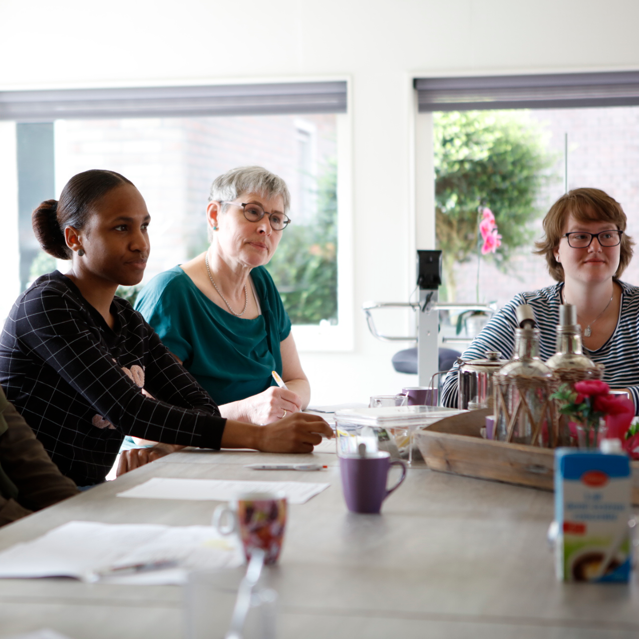 Een enthousiast team van groepsleiders, teamleiders, persoonlijk begeleiders en interieurverzorgers zorgt dagelijks met veel liefde en aandacht voor de bewoners. Zij maken daarbij gebruik van elkaars kwaliteiten, wat het werken bij ons zo aantrekkelijk maakt. Ook is er een nauwe samenwerking met andere betrokkenen , zoals de huisarts, orthopedagoog, fysiotherapeut, ergotherapeut, wondverpleegkundige, diëtist en logopedist.